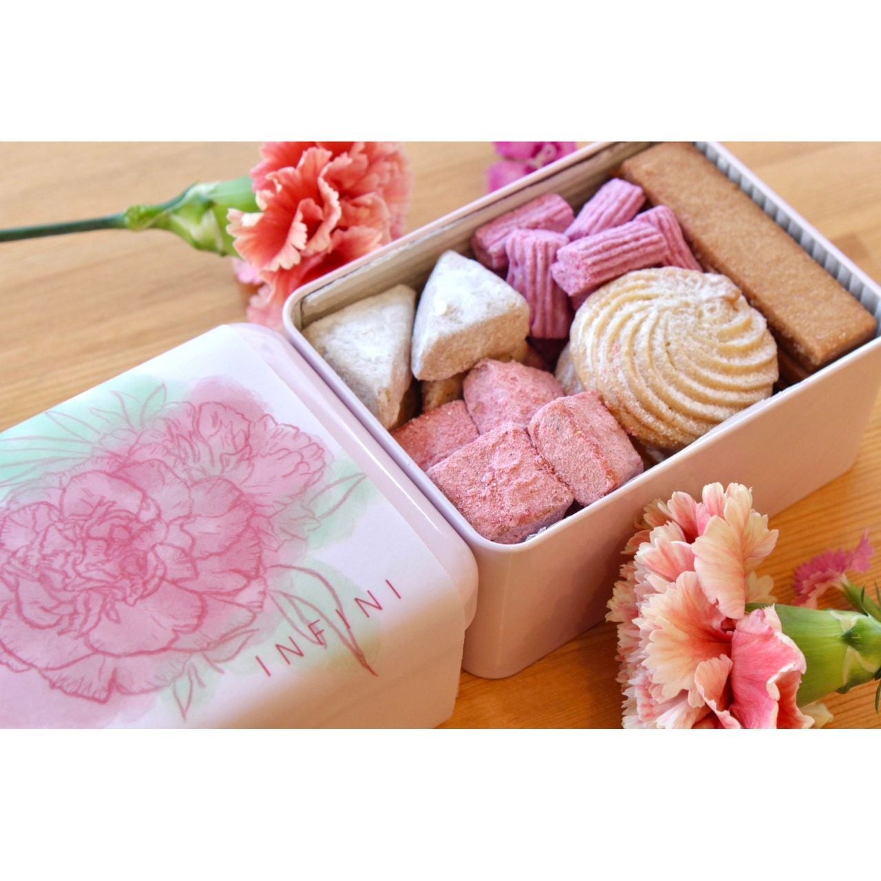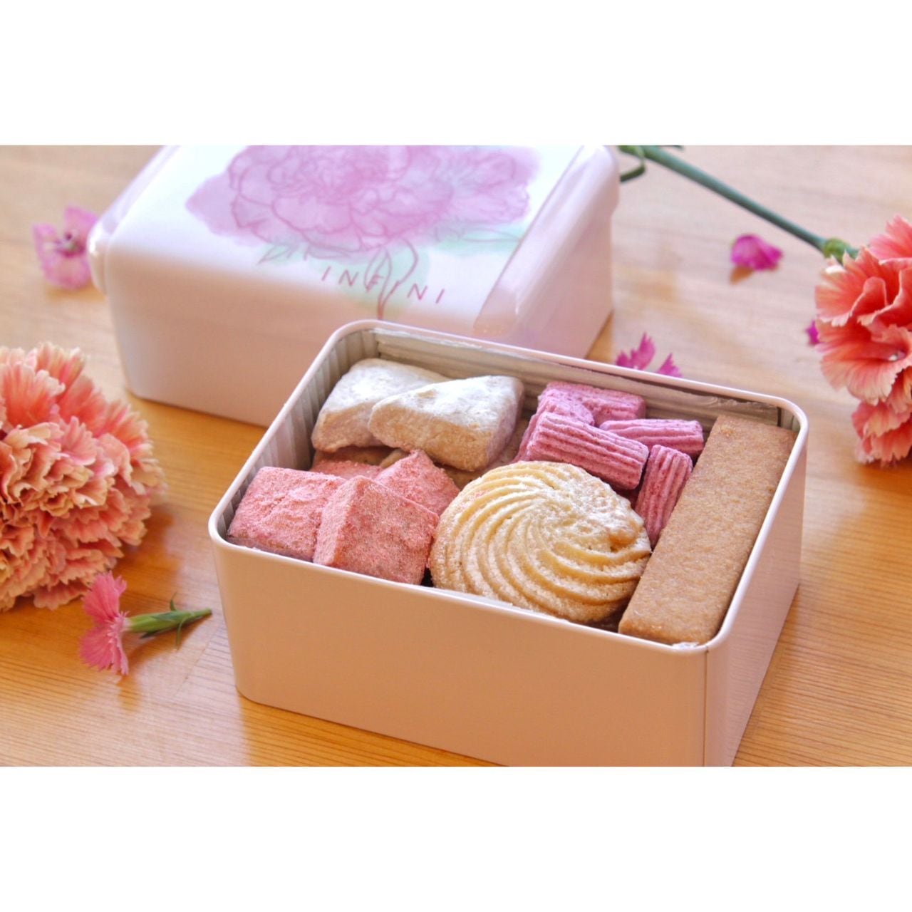 5種のフールセックを詰め合わせた華やかなデザインのクッキー缶です。